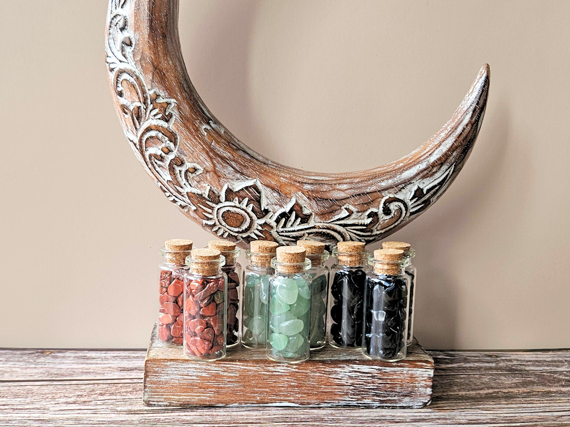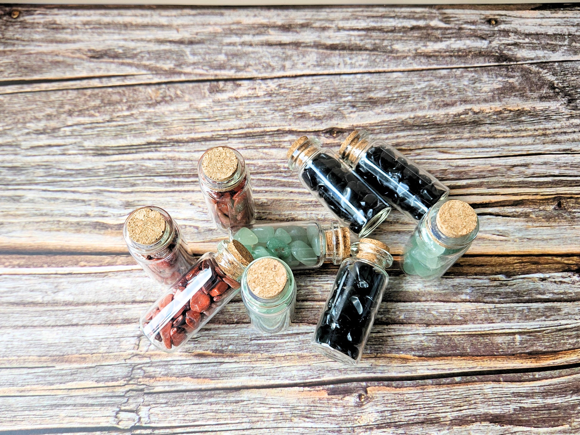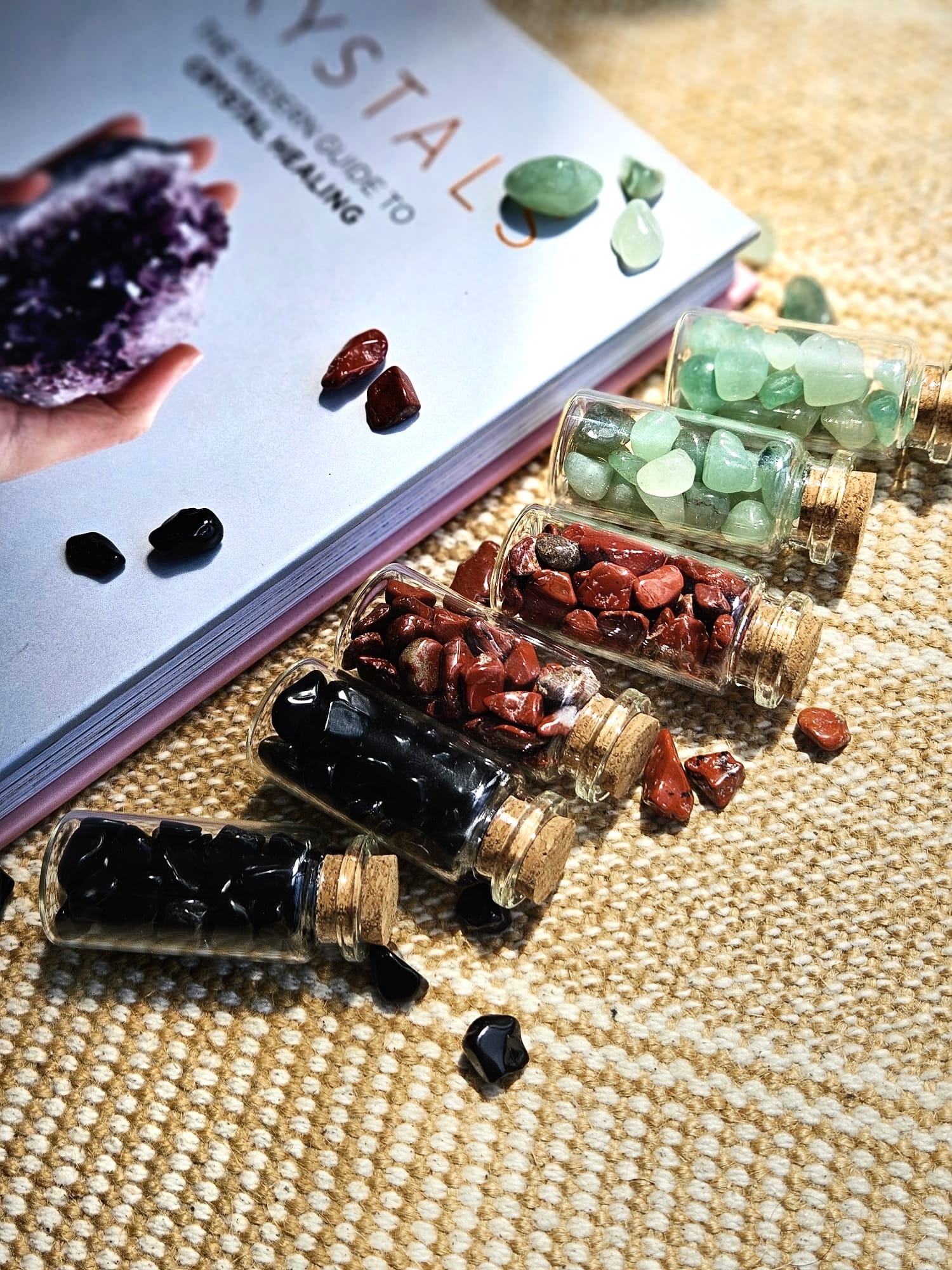 You can keep these little jars with you wherever you go—tuck them in your bag, slip them into your wallet, or place them in your favorite corner at home. Whether you're looking for a little extra support during your day or just want a calming presence nearby, these crystals are there to remind you of your inner strength and peace.